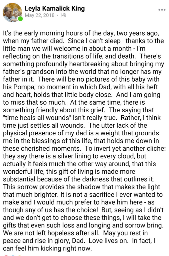 And, if that is the case, then all those things my father carried here on earth, all those human passions that made him him have not been lost, but are just held no longer in his earthly body but in the heart of God.