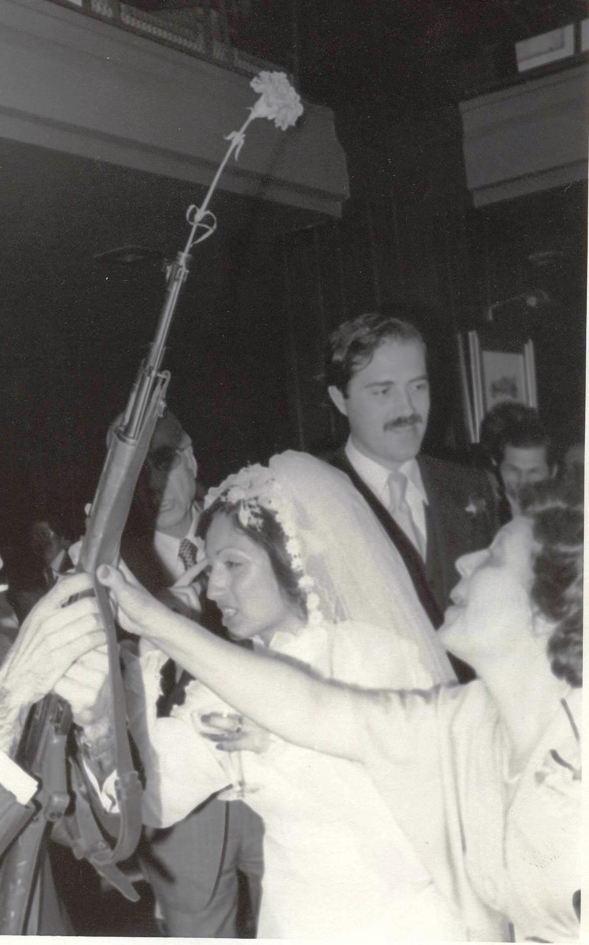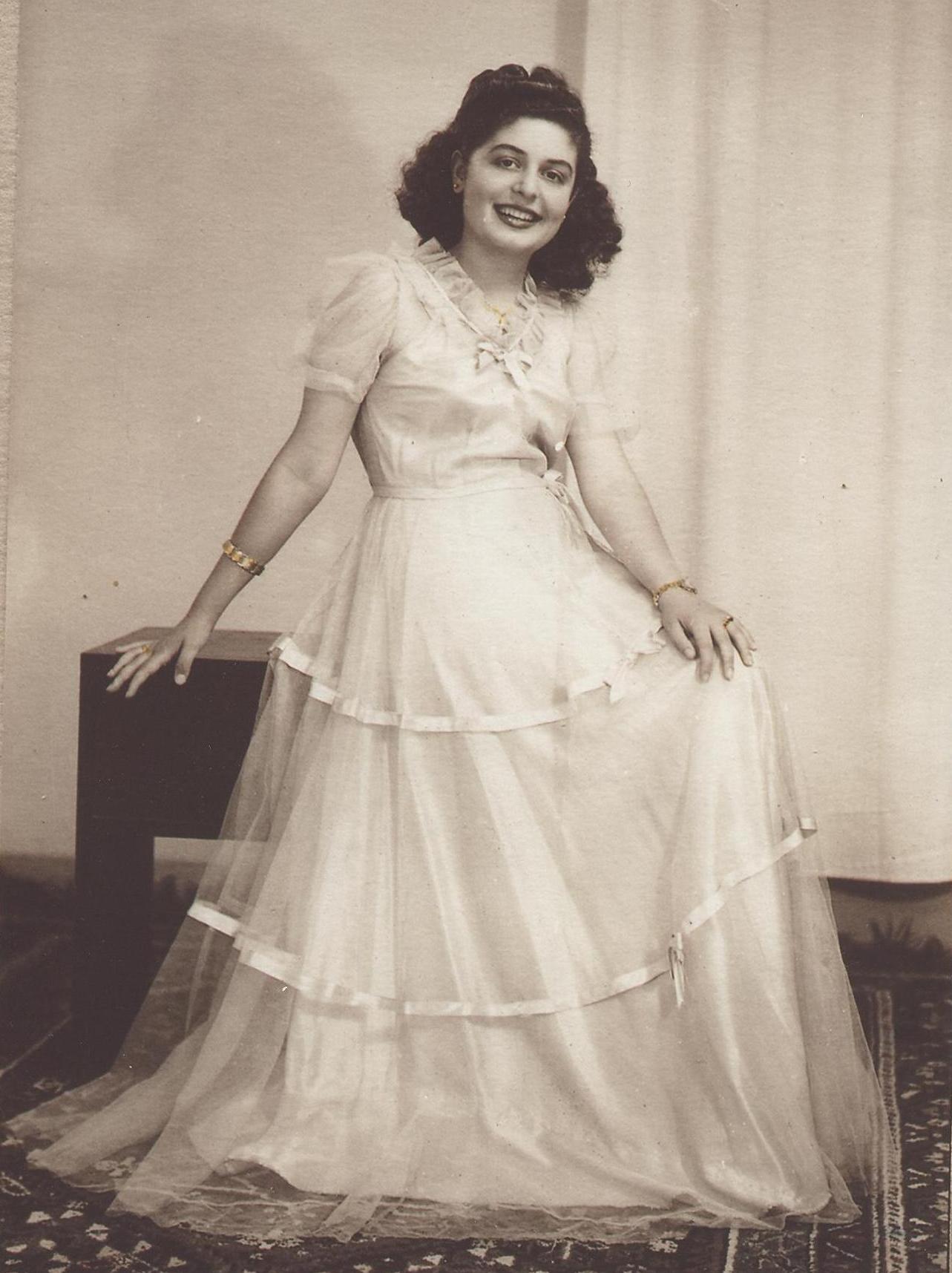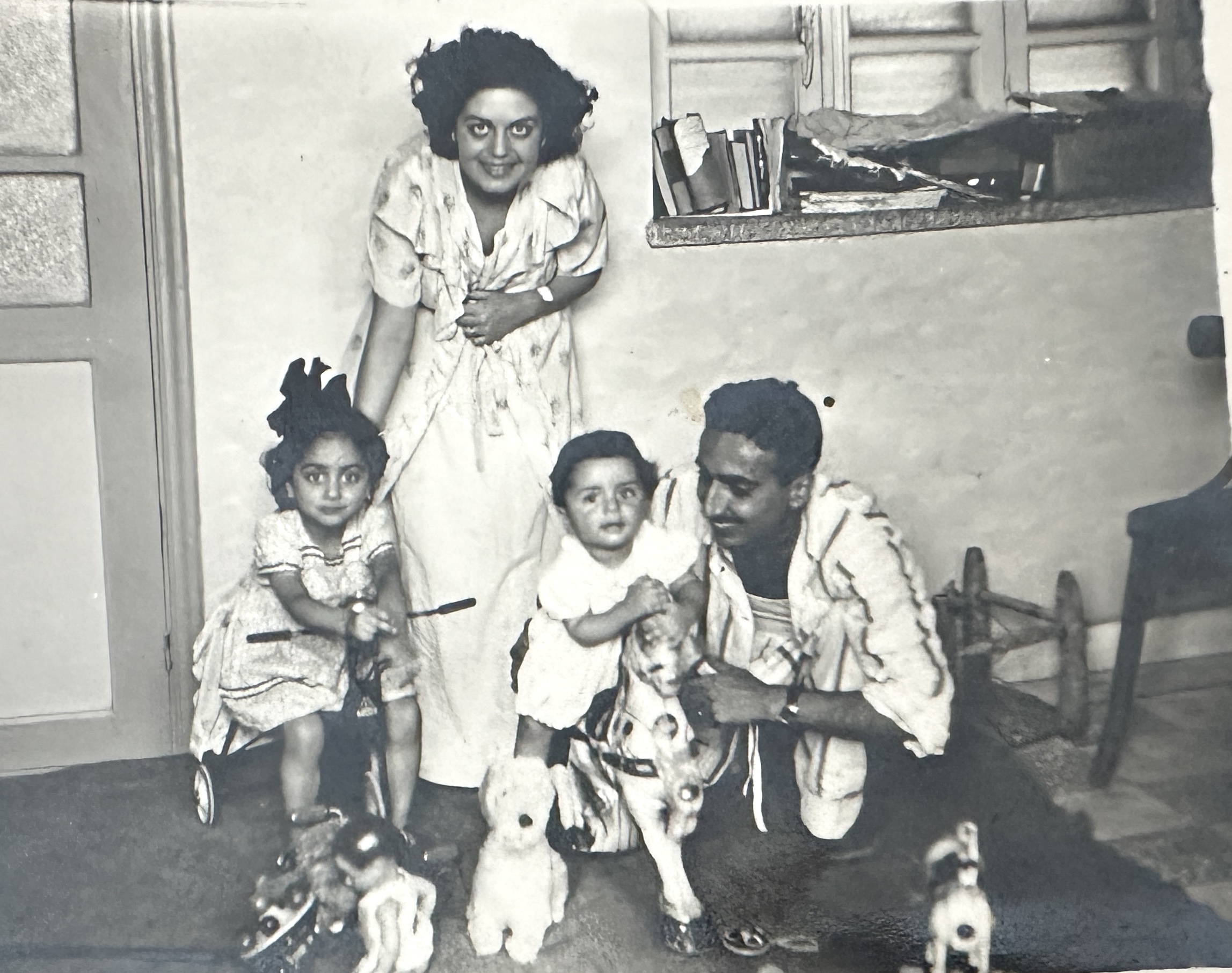 From top left to bottom right: Bahi and Fariid wedding photo; May and Elham as children; the Habiibi family in Egypt after the Nakba; Sami and his niece May in Damascus; May receives a “wedding gift” during the reception; Fariid and brother George with their father Sleiman