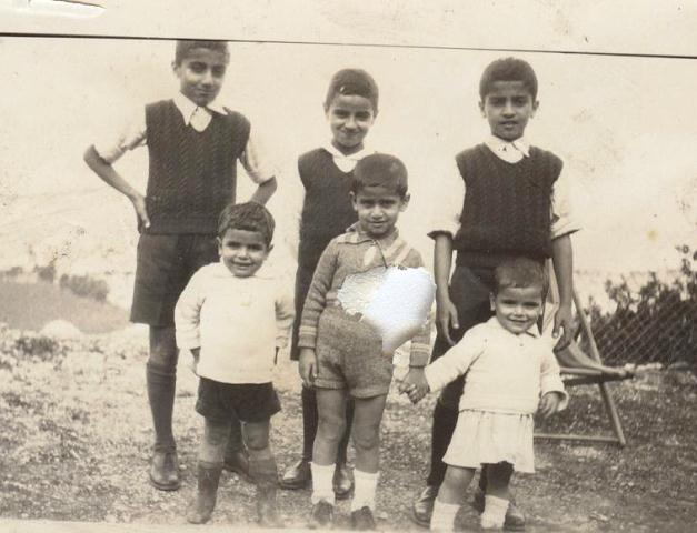 From top left to bottom right: Baby May; Baby May with her paternal grandmother Labibeh; Fariid (back left) with his five brothers; May & Joe on their wedding day, Beirut; the Owayda family; Bahi & Leyla; Bahi at the Ramallah Friends School (seated, second from left); Aniiseh & Wadii’ on their wedding day and then later.
